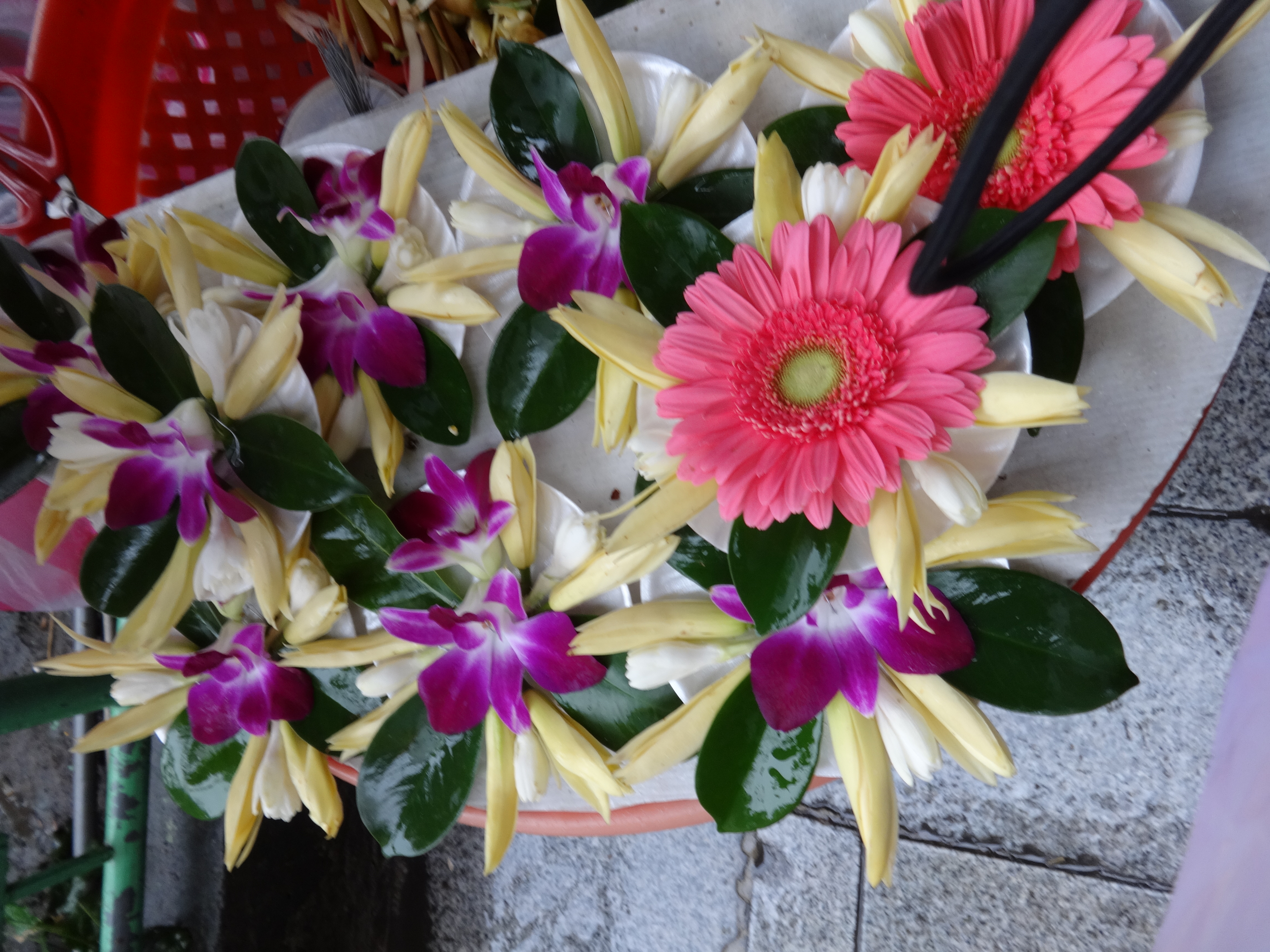 At the entrance to the temple, there were vendors selling fragrant flowers meant for prayer and worship uses, but I bought up one because it was made of these really fragrant flowers sold all over Taiwan as natural air fresheners.