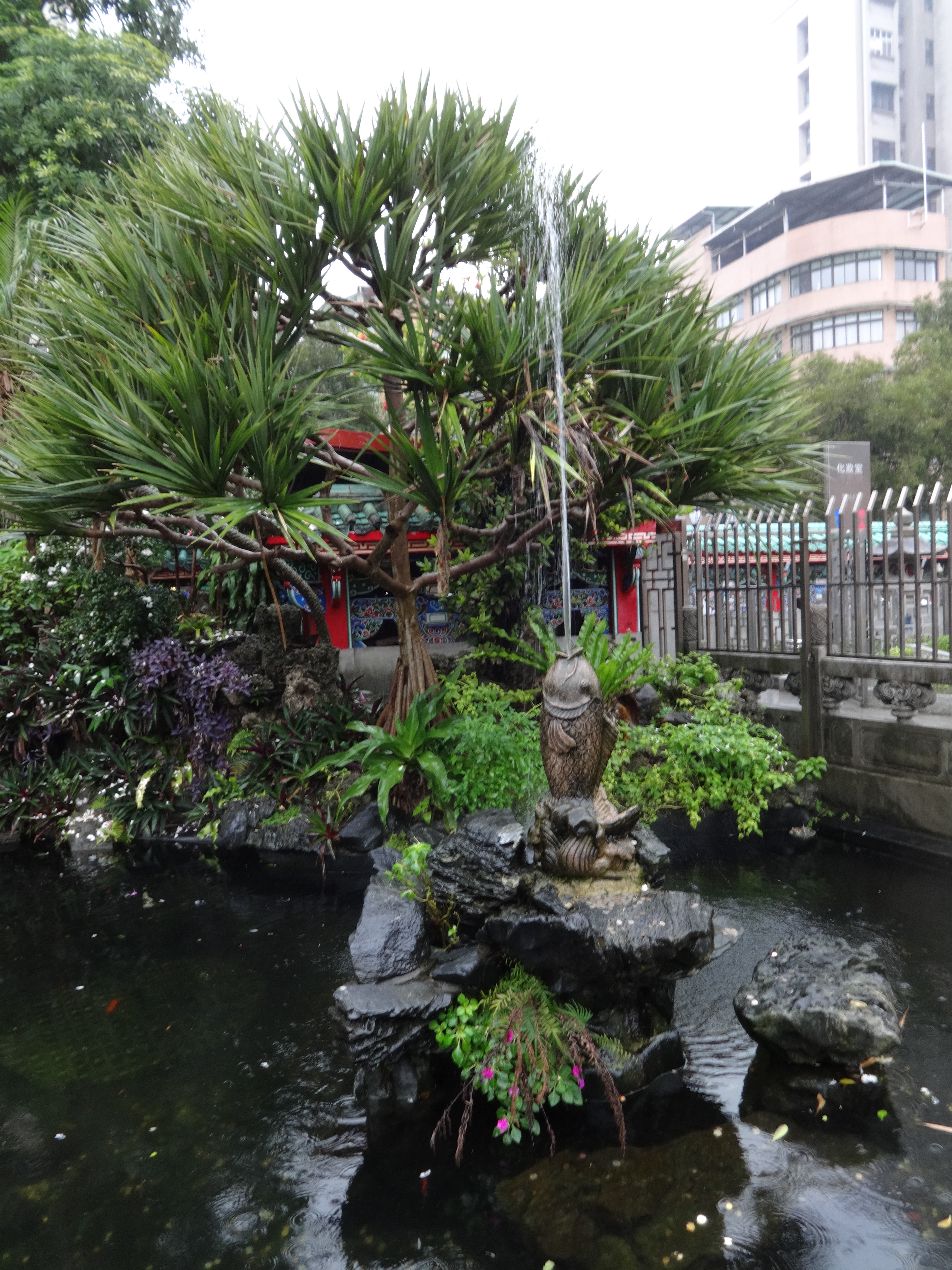 Upon entering the temple, you’ll see a lovely courtyard with a gardens, ponds, and breathtaking man-made waterfalls. On the day when I arrived at the temple, it was drizzling, but that just served to give the whole place a special rain-enhanced dazzle to it.