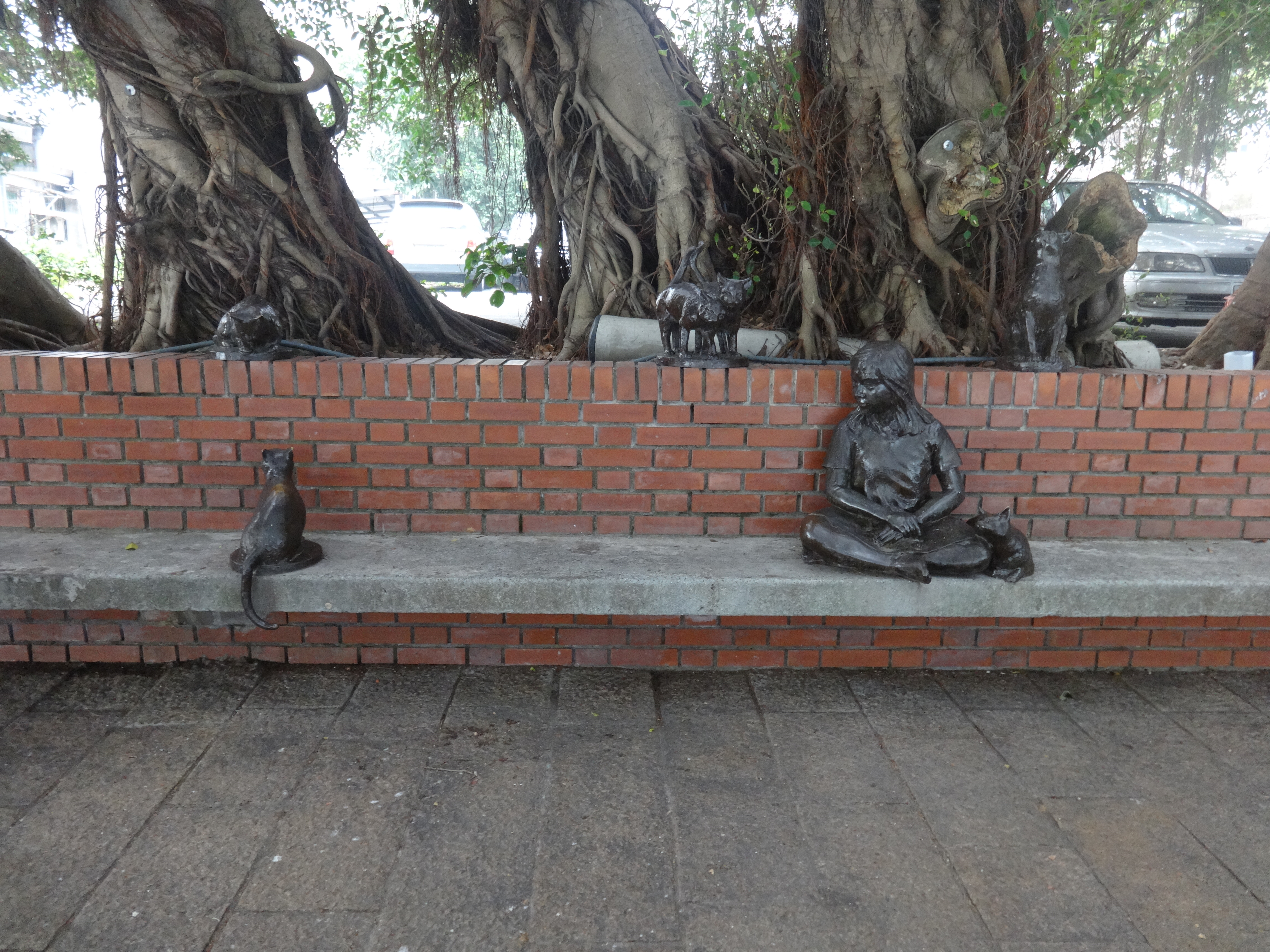 The crowd cleared up, but the evenness of the path did not return, and it was just really hard to tell what was going to come up next. There was a very interesting statue collection under some drooping trees whose branches dipped poetically into the water. In what looked like bronze casting was a little girl and surrounding her were a number of cat statues as well. If anyone can tell me the story behind that girl, I’d be much obliged.