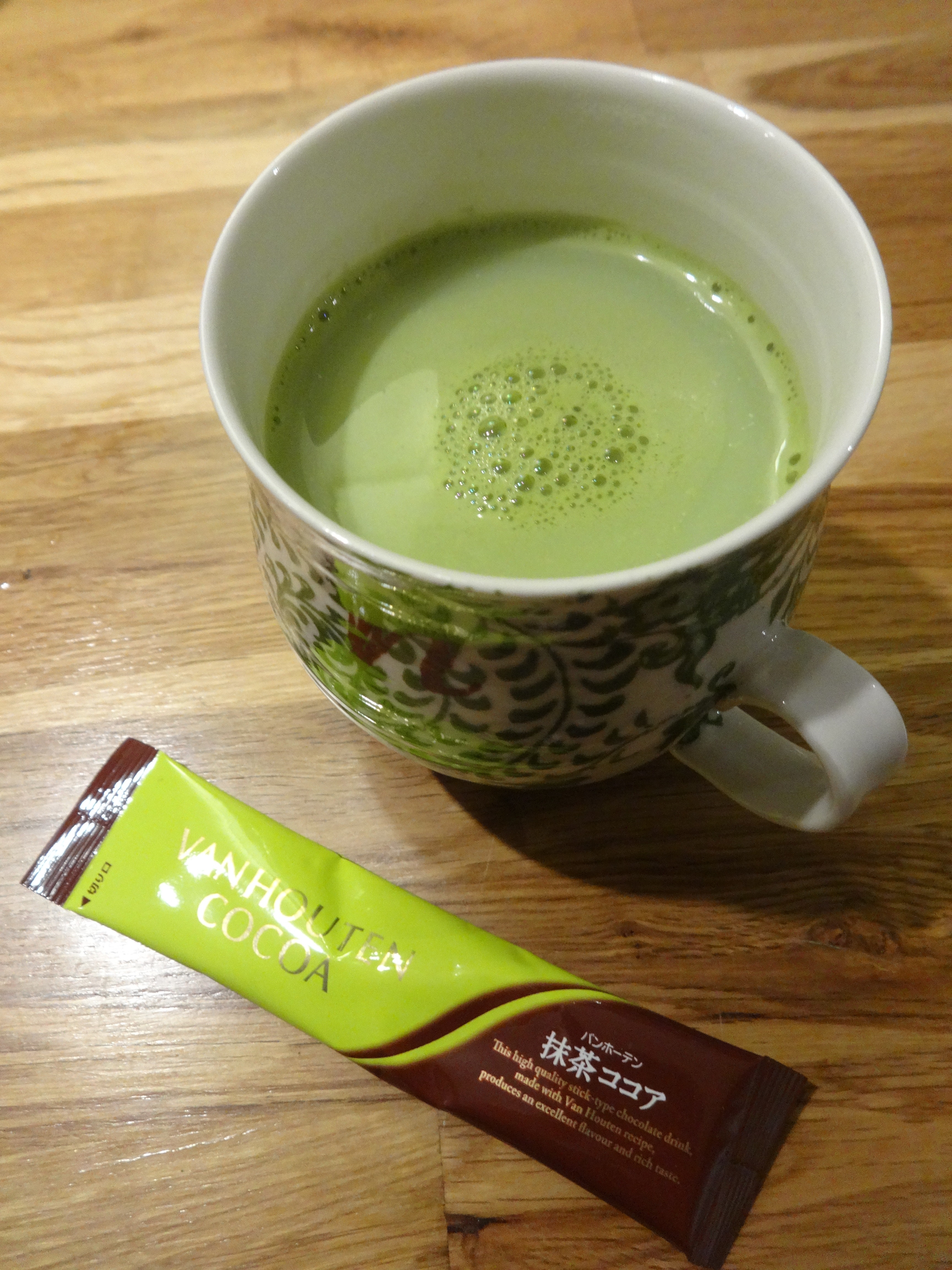 Aside from my regular favorite hot green teas or jasmine green, I tried a lot of different other drinks, and my favorite one was this Van Houten matcha hot chocolate drink. Delicious!