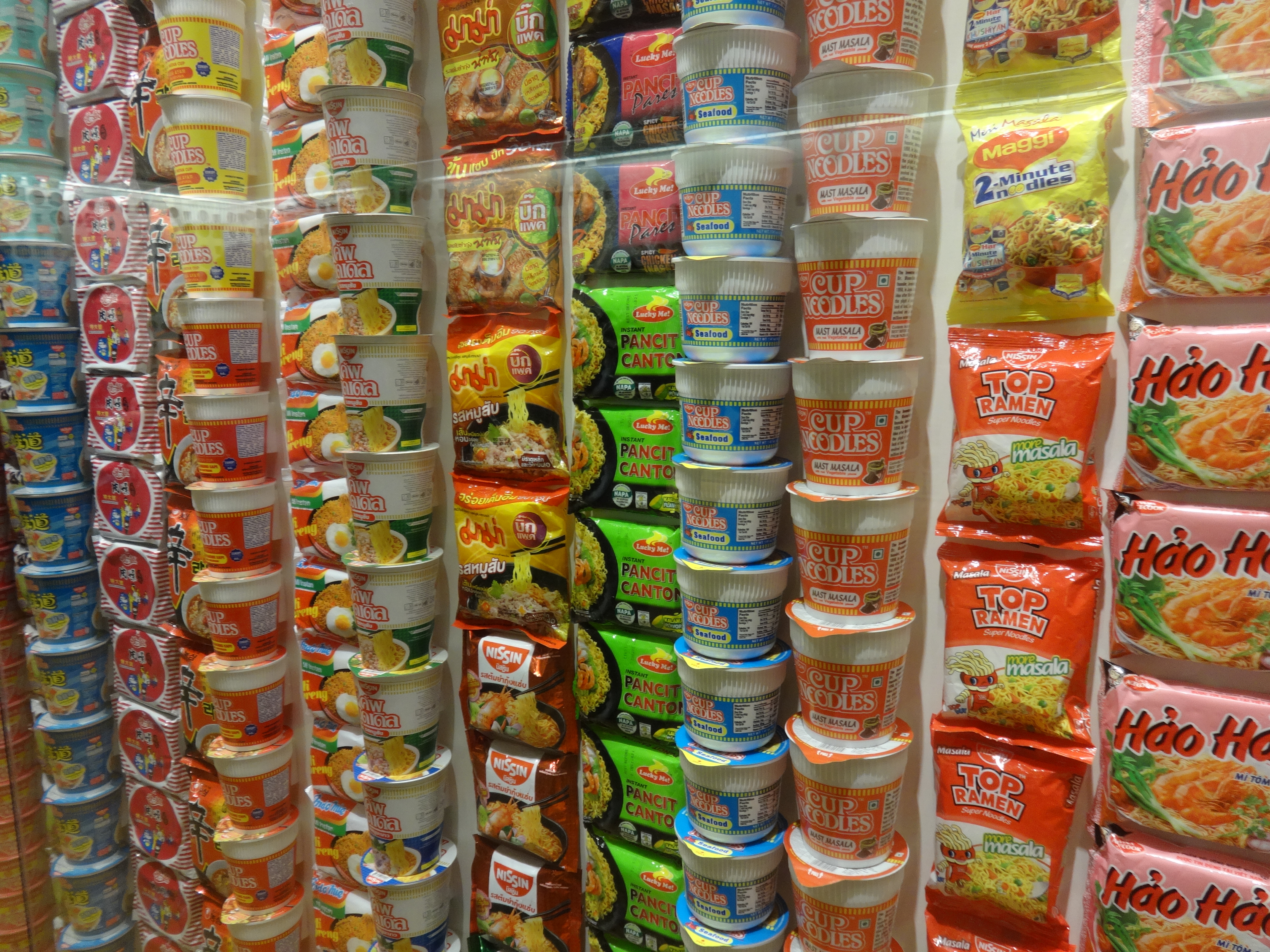 Basically, what you do is go around buying little meal tickets for the different noodles from different coin-operated vending machines that you can exchange for bowls of noodles, about 5-10 different kinds from all over the world.