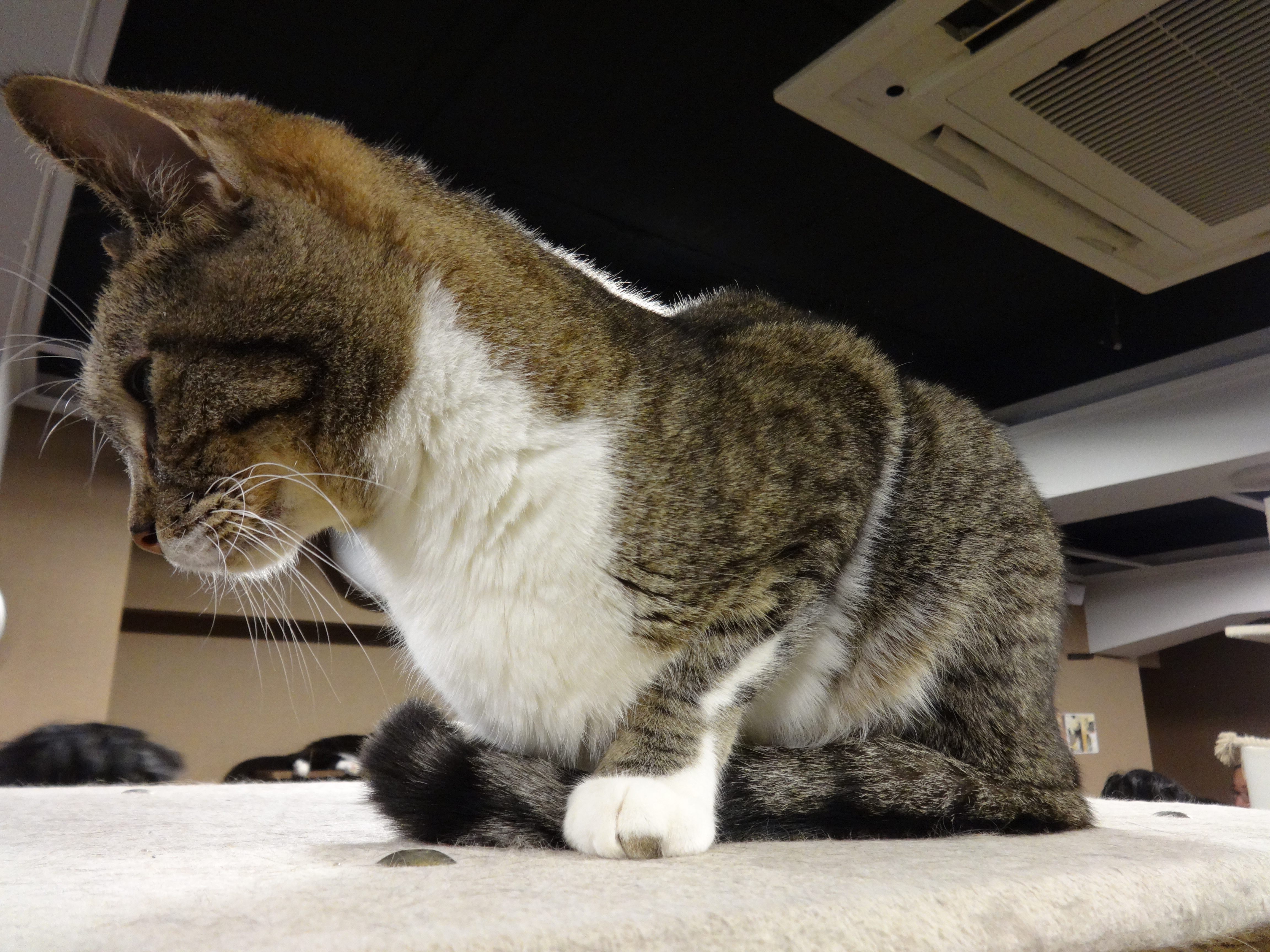 The cost was by the hour, which I remembered to be about 1200 yen, a little over $10 USD. You could pay more for more time, with deals for longer stays, and there were people inside who seemed to be hanging out and reading books or on their laptops. Some sat still in front of cats, waiting for them to come to them.