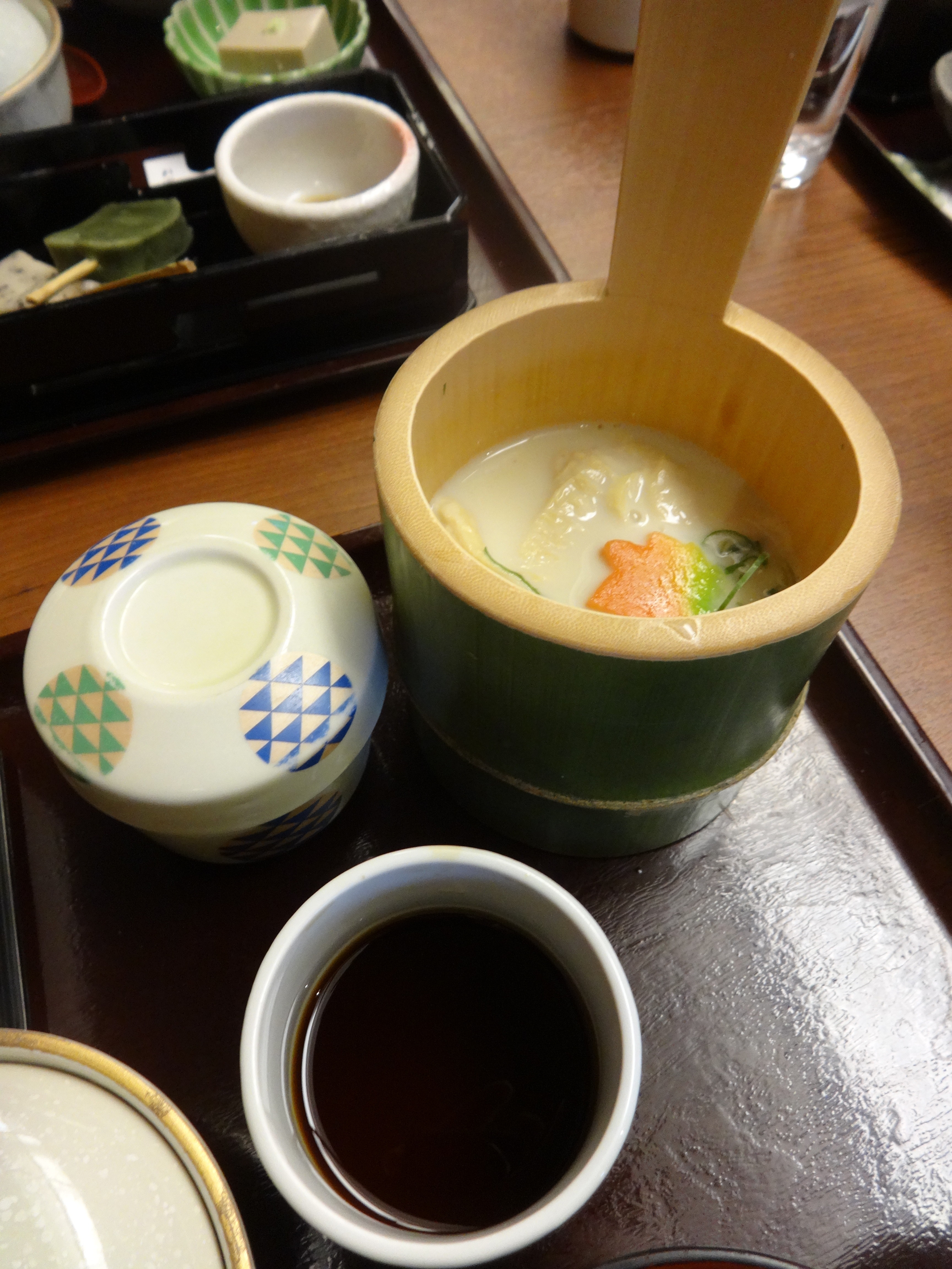 Not all the meals that I considered “kaiseki” are really pure kaiseki, and they weren’t all in Kyoto specifically, but although I’ve had Japanese food my entire life, it really just struck me on this trip and my culinary experiences this time that made me realize there was a certain tradition of attention to detail found in a lot of Japanese food preparation, from expensive high class cuisine to the most detailed and artistic bento creations made for kids to take to school. As I’ve read up a bit on kaiseki, I began to understand the elements of kaiseki that seem to appeal to me.