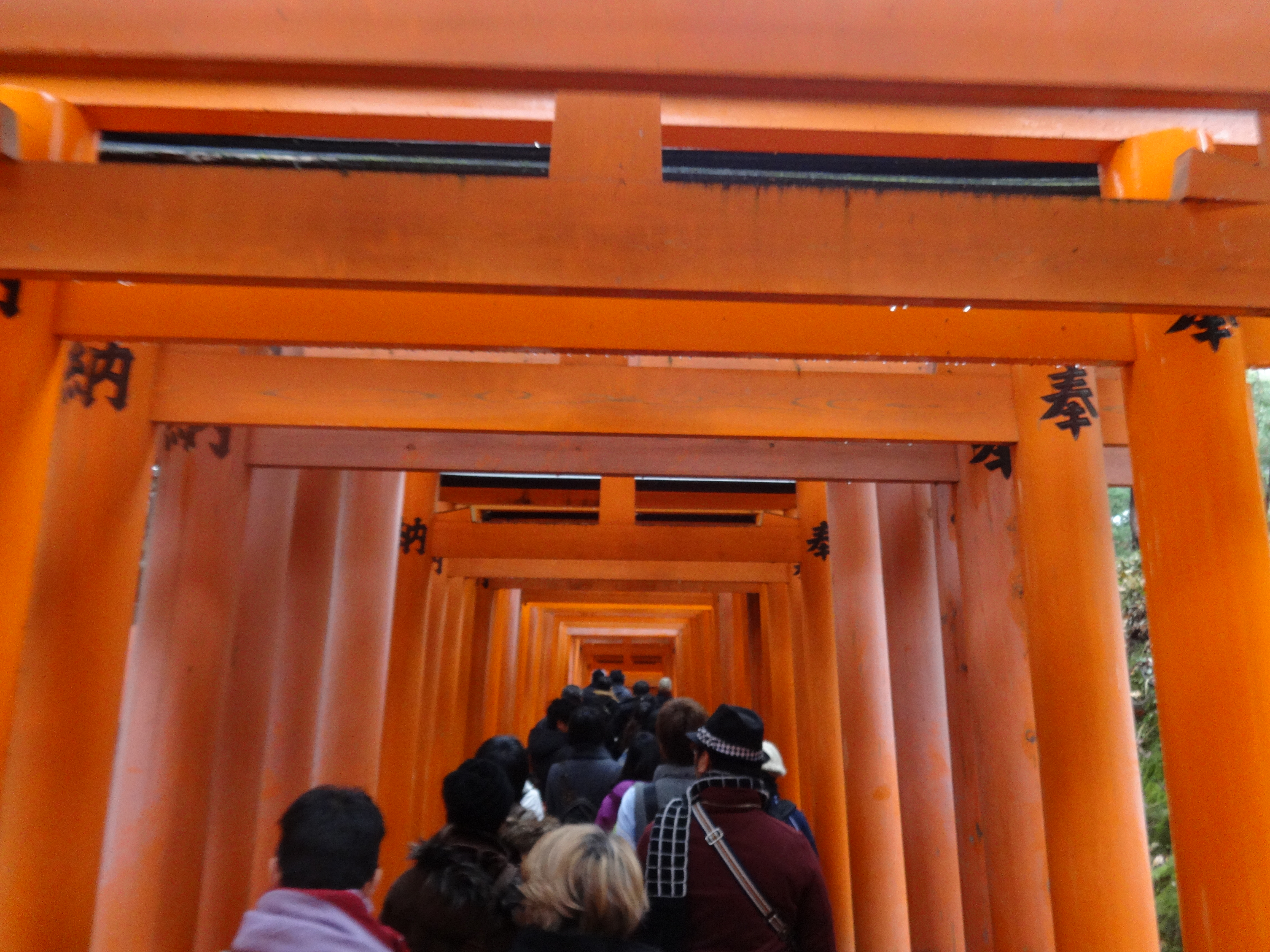 As you walk in, you’ll find shrine buildings, some shops, and some vendors selling shrine goods. Further in, you’ll start to see the rows and rows of torii gates. The winter morning we went, it was rather crowded.