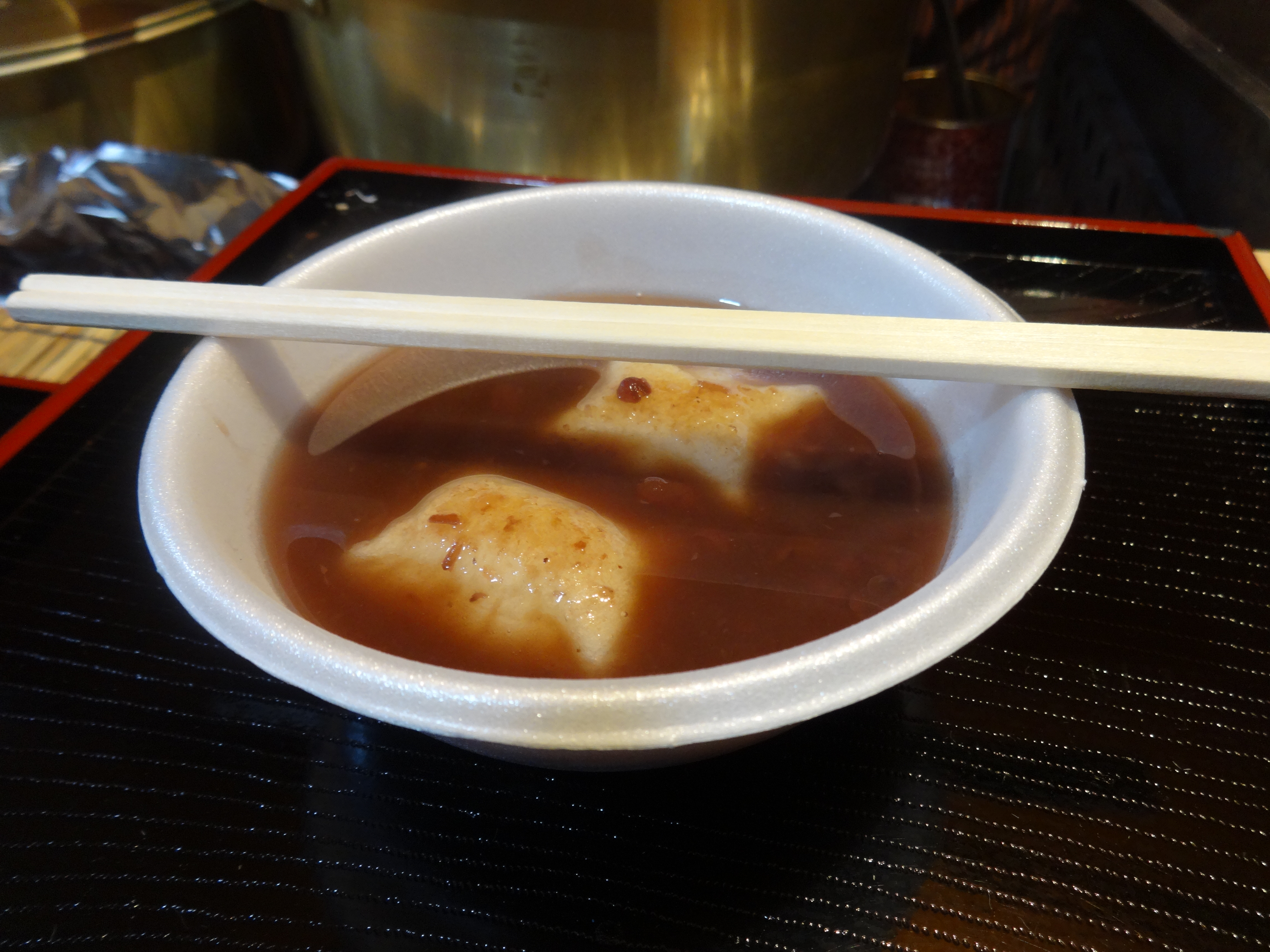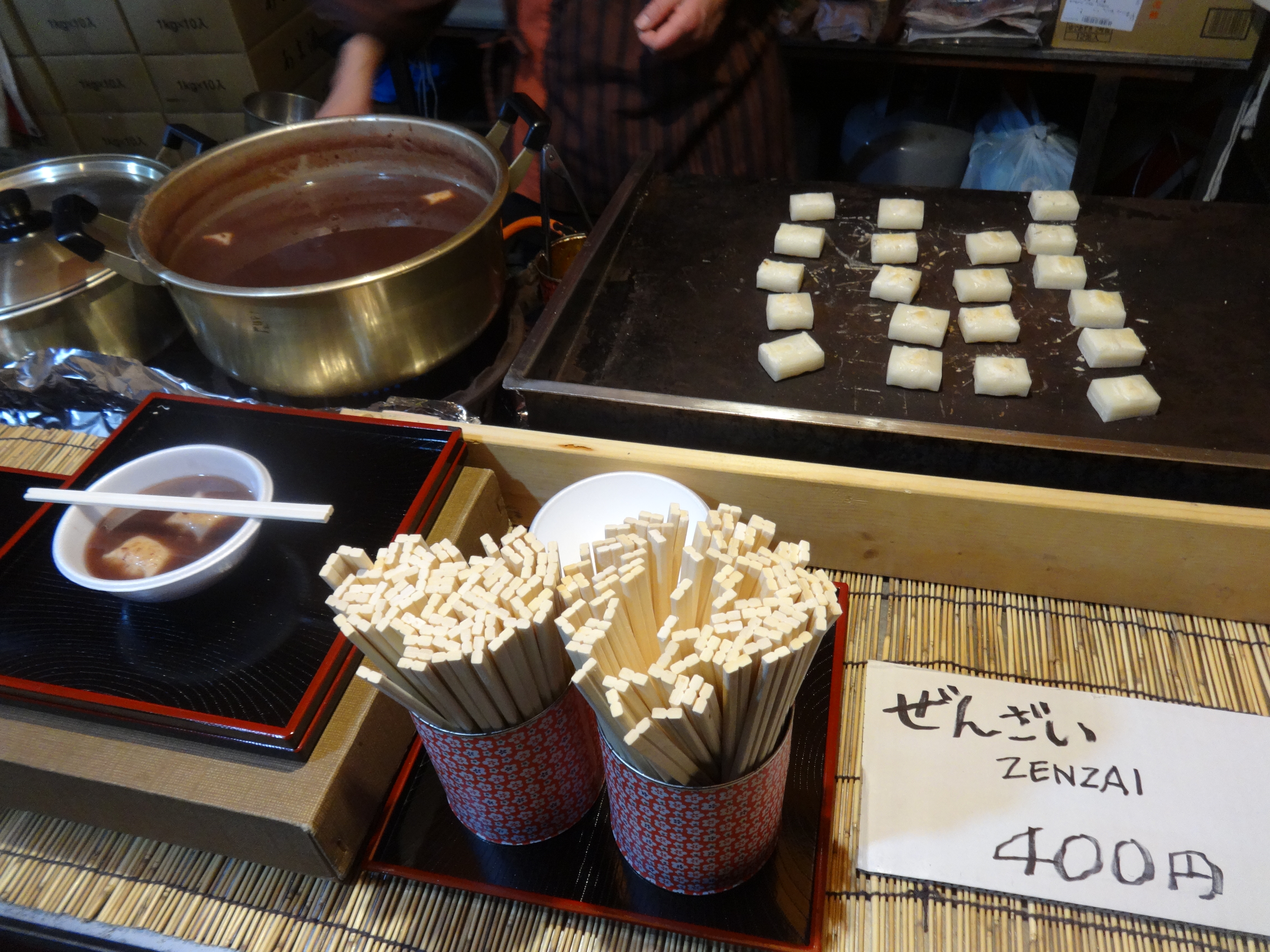 The little old obasan ladies that were manning that booth did the whole “Don’t you speak Japanese?” thing to me when I tried to buy some with minimal Japanese skills. I guess thanks to my good pronunciation, they were pretty much like “It’s zenzai. Don’t you know what zenzai is?” They didn’t say “Duh” but their faces said it. I forgot to start my conversation with “Do you speak English?” first, and that was the beginning of my downfall in that conversation. It did kind of remind me of a moment I had in Taiwan when I tried to ask what they had at a restaurant using my Taiwanese skills to hide my illiteracy at the time, and the guy was like “Can’t you read the signs behind me?” No I can’t. I’m American.