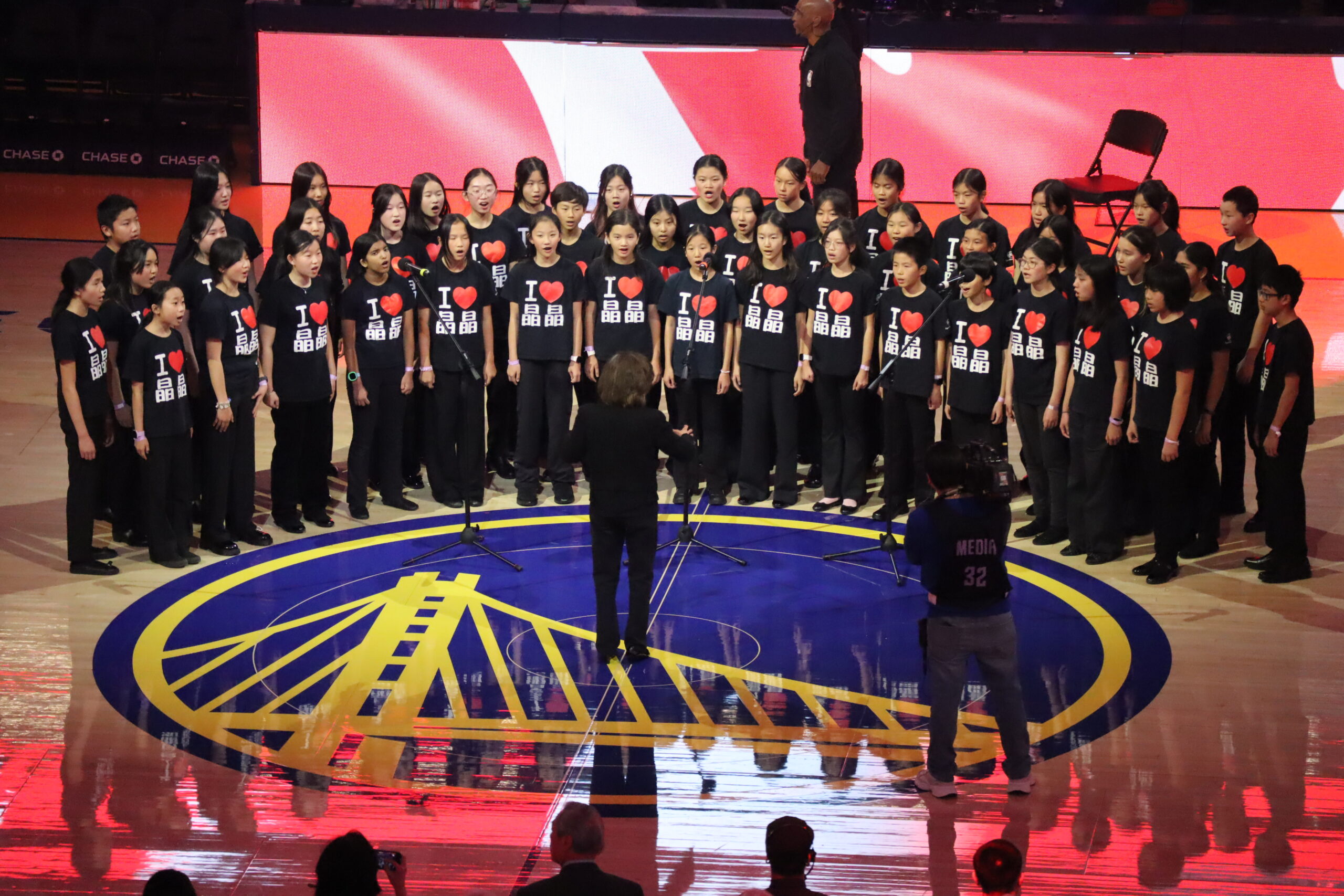 Before the start of the game, I believe it was Huaxing SF that did the pre-game performance that sang both the Canadian and the U.S. national anthem. The Warriors were playing the Toronto Raptors.